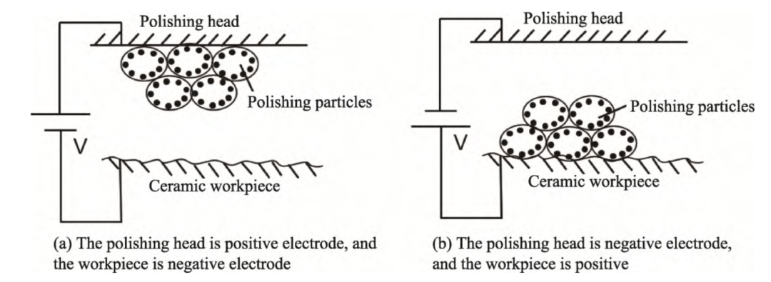 This technique uses electric fields to guide charged abrasive particles onto the workpiece surface. Depending on electrode polarity, particles migrate and polish the surface through soft friction and impact.