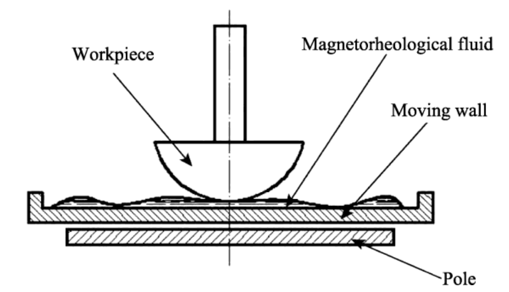 MRF employs a fluid containing magnetic particles that changes viscosity under a magnetic field. This fluid flows through a narrow gap between the workpiece and a rotating disk, generating strong shear forces that polish the surface.