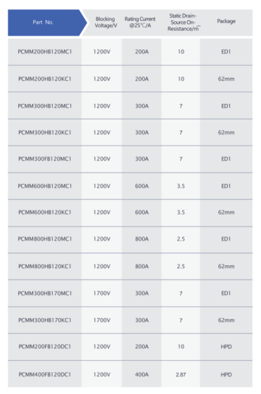 Our 650V-1700V industrial-grade and automotive-grade SiC power modules are designed for high-efficiency power conversion, widely used in renewable energy, smart grids, electric vehicles (EVs), industrial automation, and more.